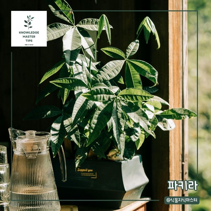 파키라의 관리는 다른 식물들에 비해 조금 더 주의가 필요합니다. 토양을 과습 하지 않게 관리하면서, 충분히 물을 주되, 토양이 거의 마른 상태에서 물을 주는 것이 좋습니다. 고온 다습한 환경을 선호하므로, 실내 습도를 적절히 관리하는 것이 중요합니다. 직사광선을 피하고, 밝은 간접광을 제공하세요.